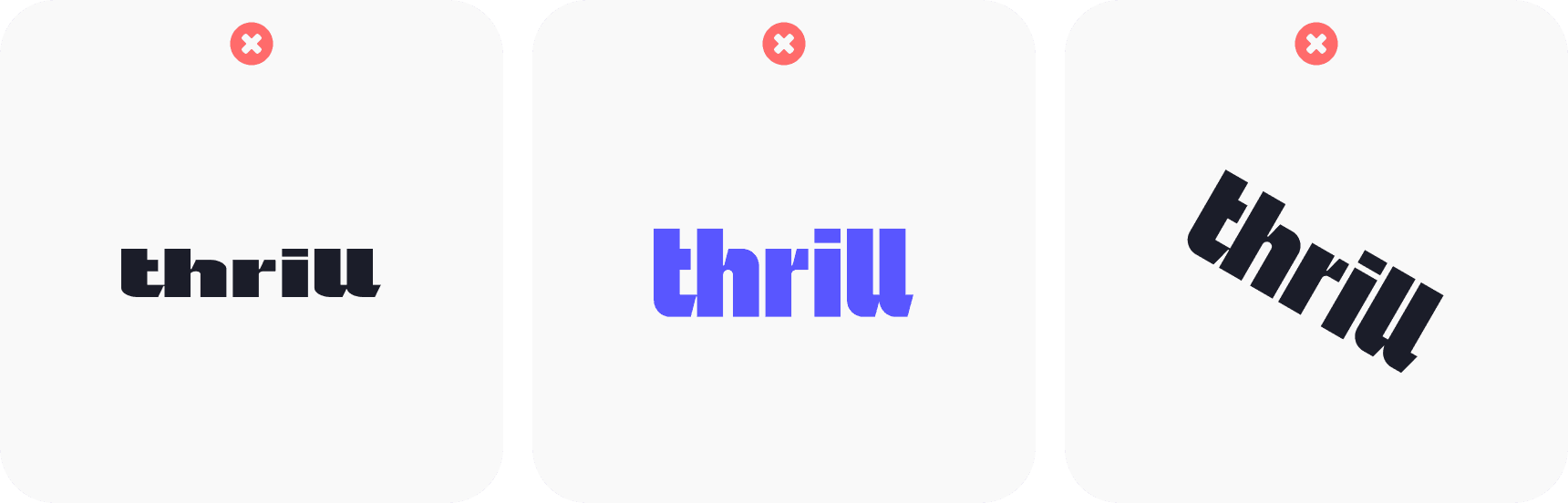 The Thrill logo is the primary mark of the brand and should be used in most cases to ensure clarity and recognition. Always use the official versions provided.