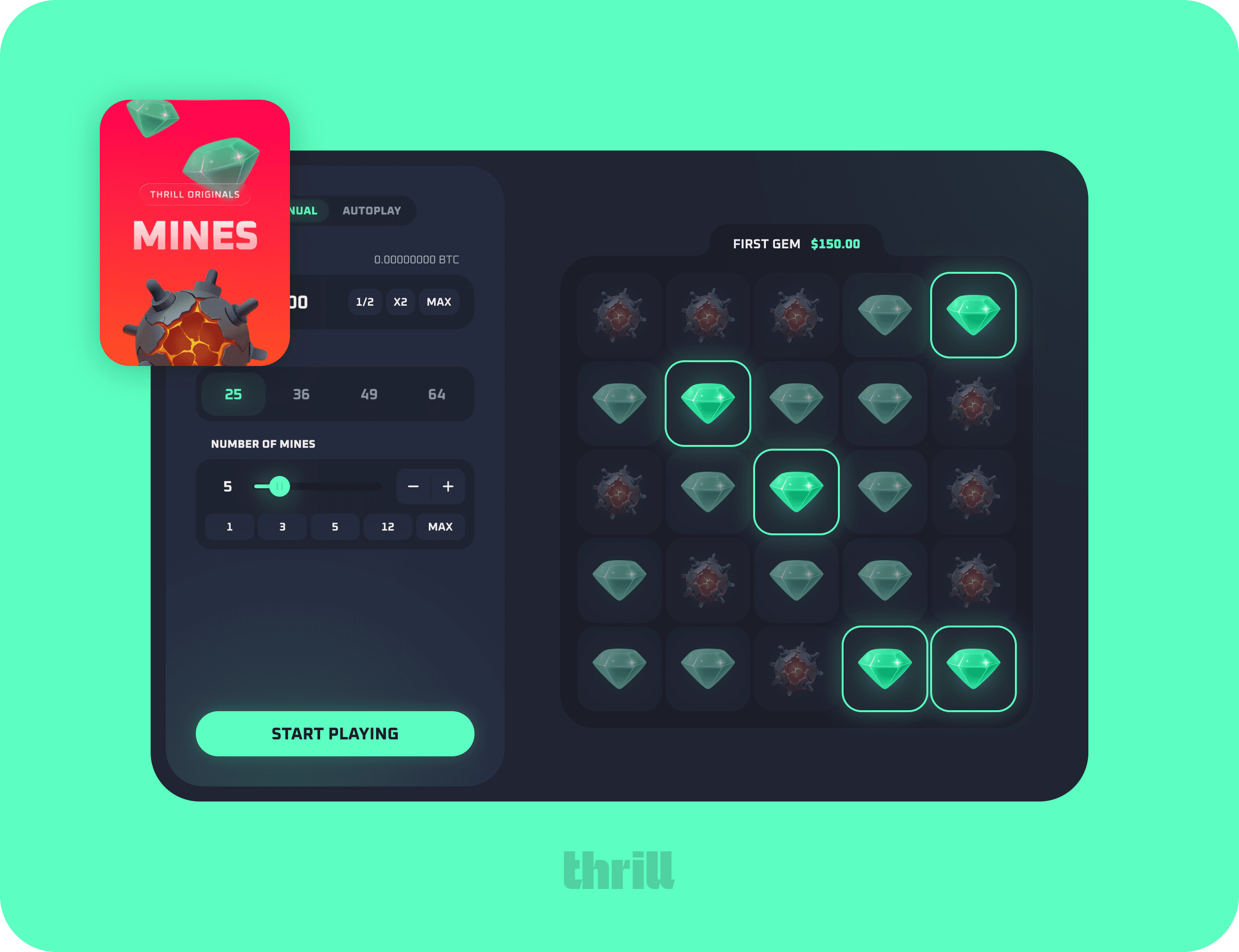 Configurable Grid Size - Choose grid size and number of mines to control volatility and potential rewards.