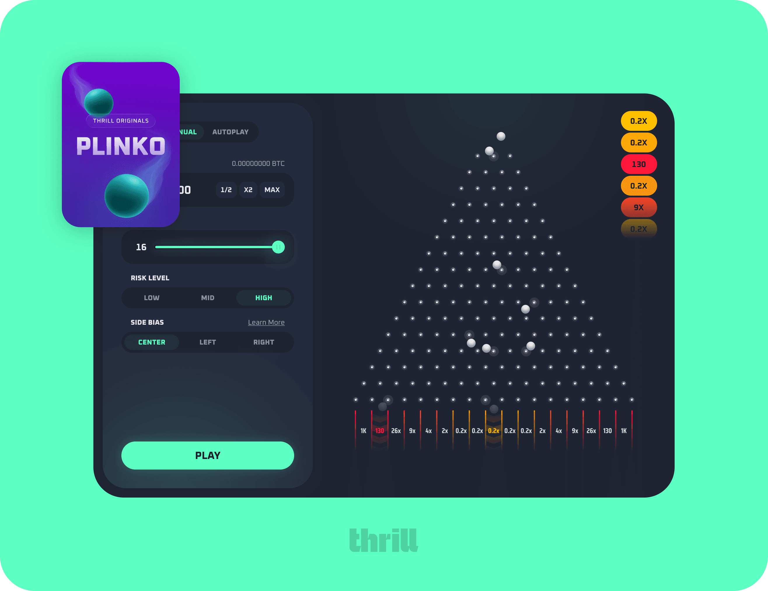 Adjustable Risk Levels - Choose your volatility. Play for steady, consistent drops or chase the high-value multipliers at the edges.